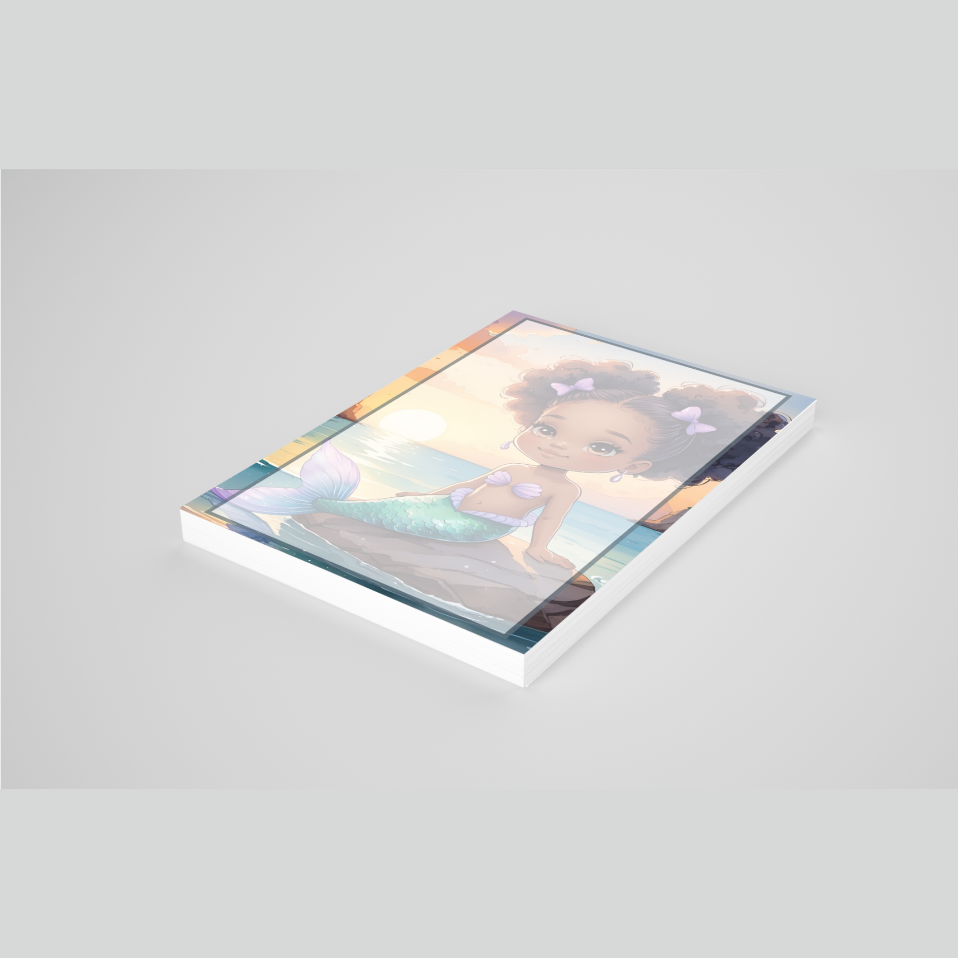 Tags / Keywords: Brown Girl Magic, Afro Mermaid, Chibi Mermaid, Cute Notepad, Journaling, 4x6 Notepad, Gifts, Version B 🌊✨