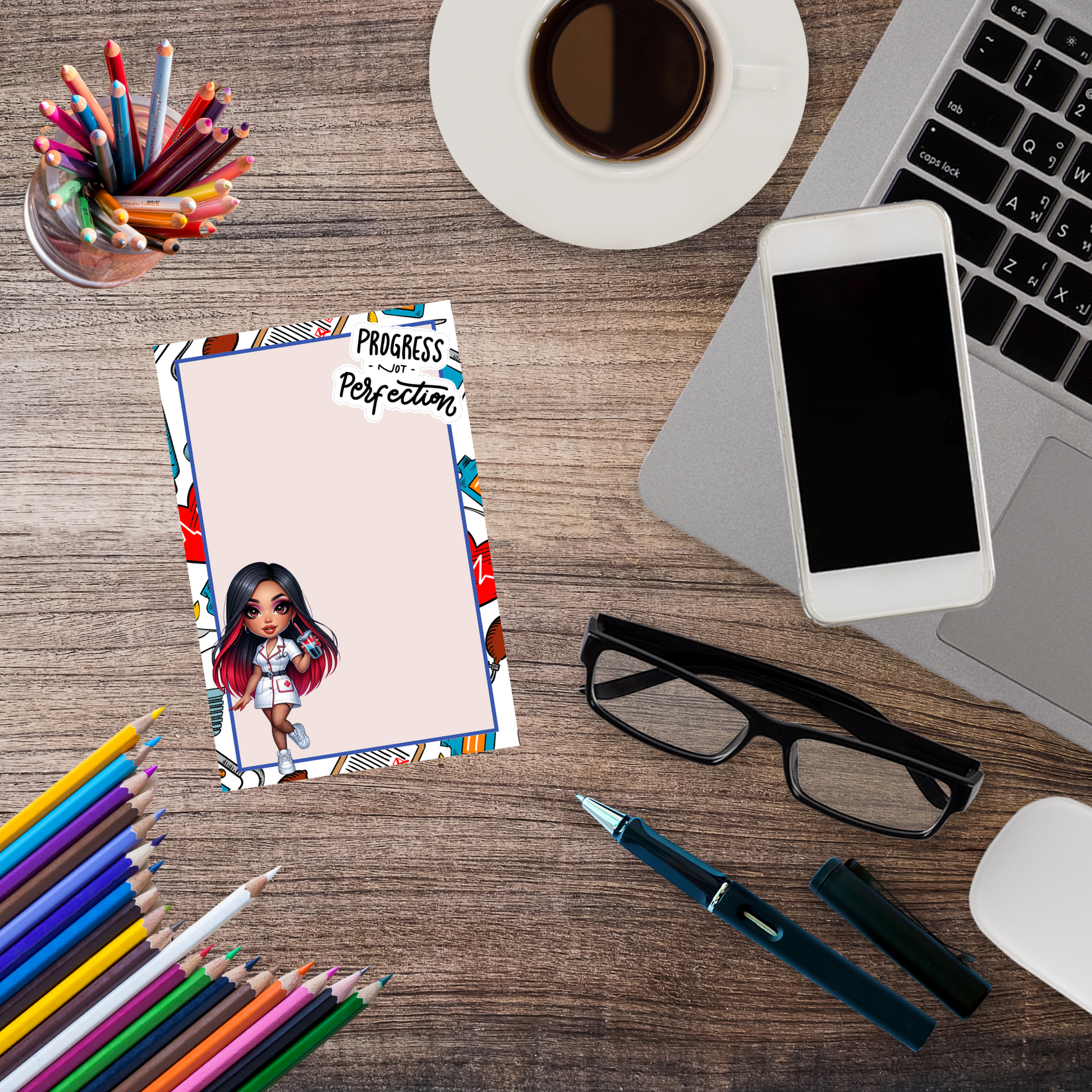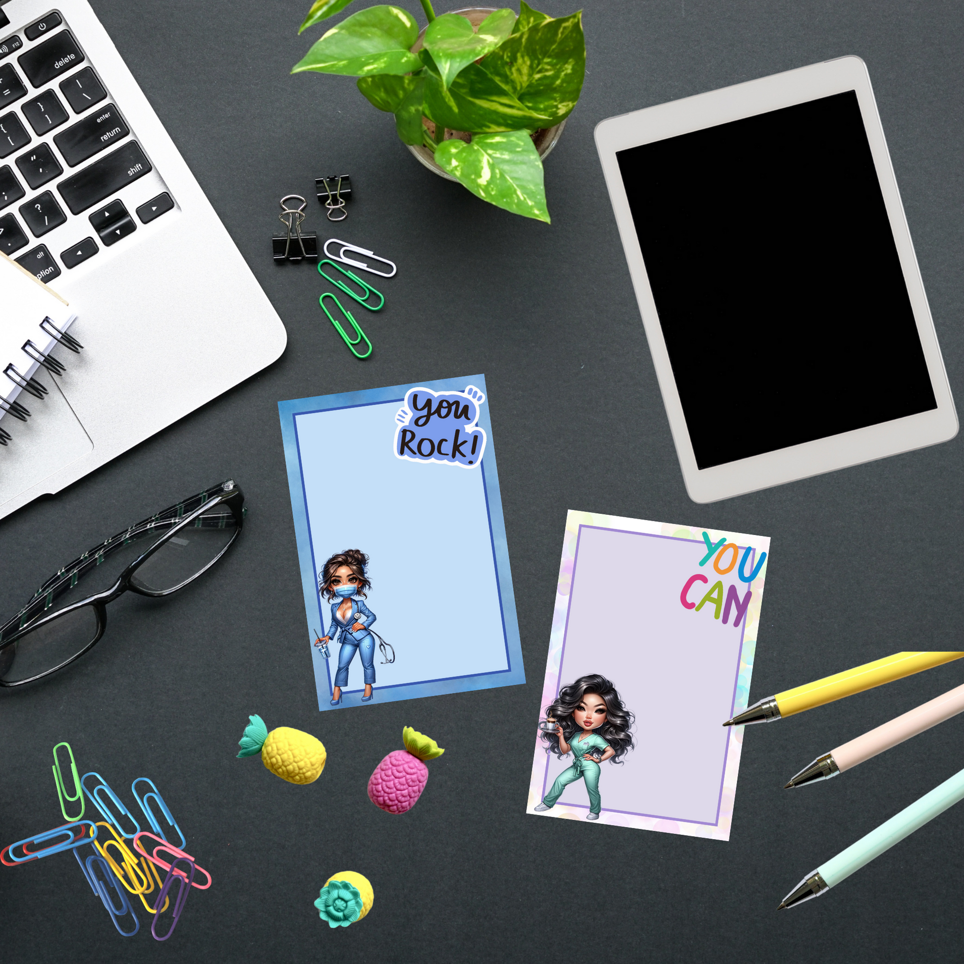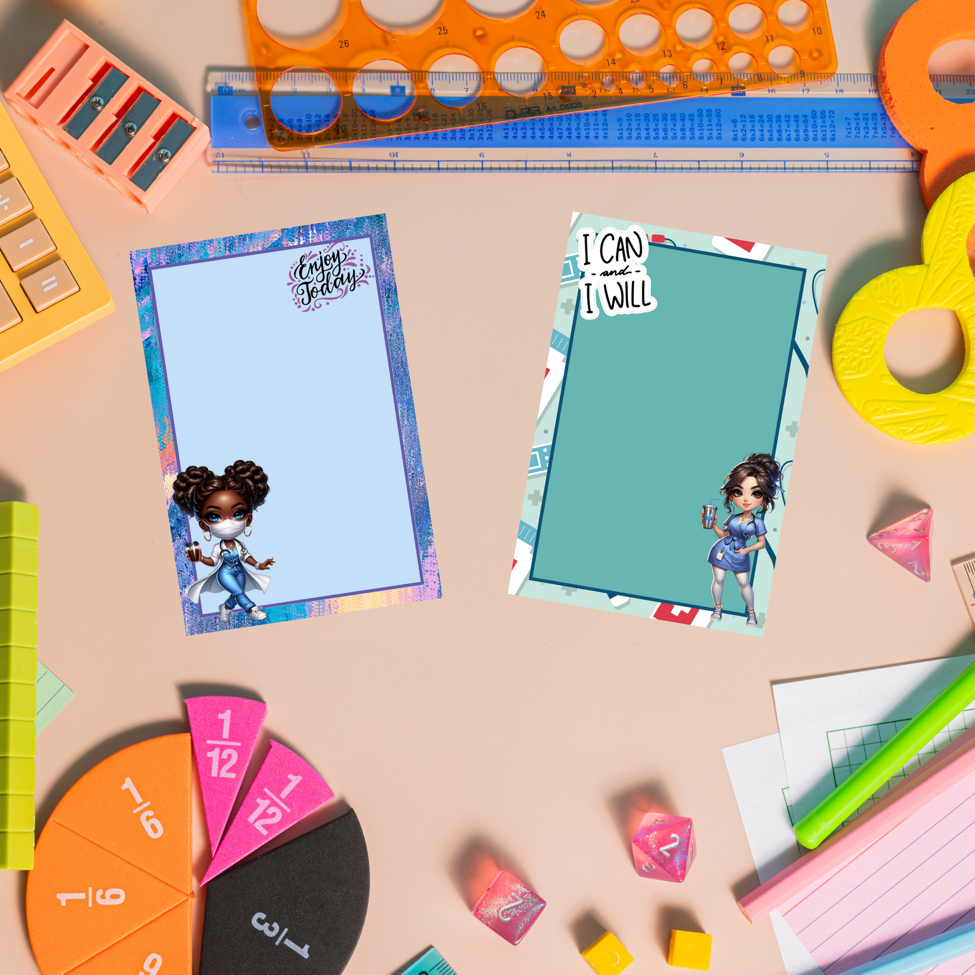 These 4x6 chibi nurse notepads are here to brighten your day (and your desk)! 🧑🏾⚕️💉 Each page is packed with colorful designs + motivational quotes to keep you smiling while you write. With 50 sheets per pad, you’ll never run out of room for your thoughts, doodles, or quick notes. 🌈✍🏾